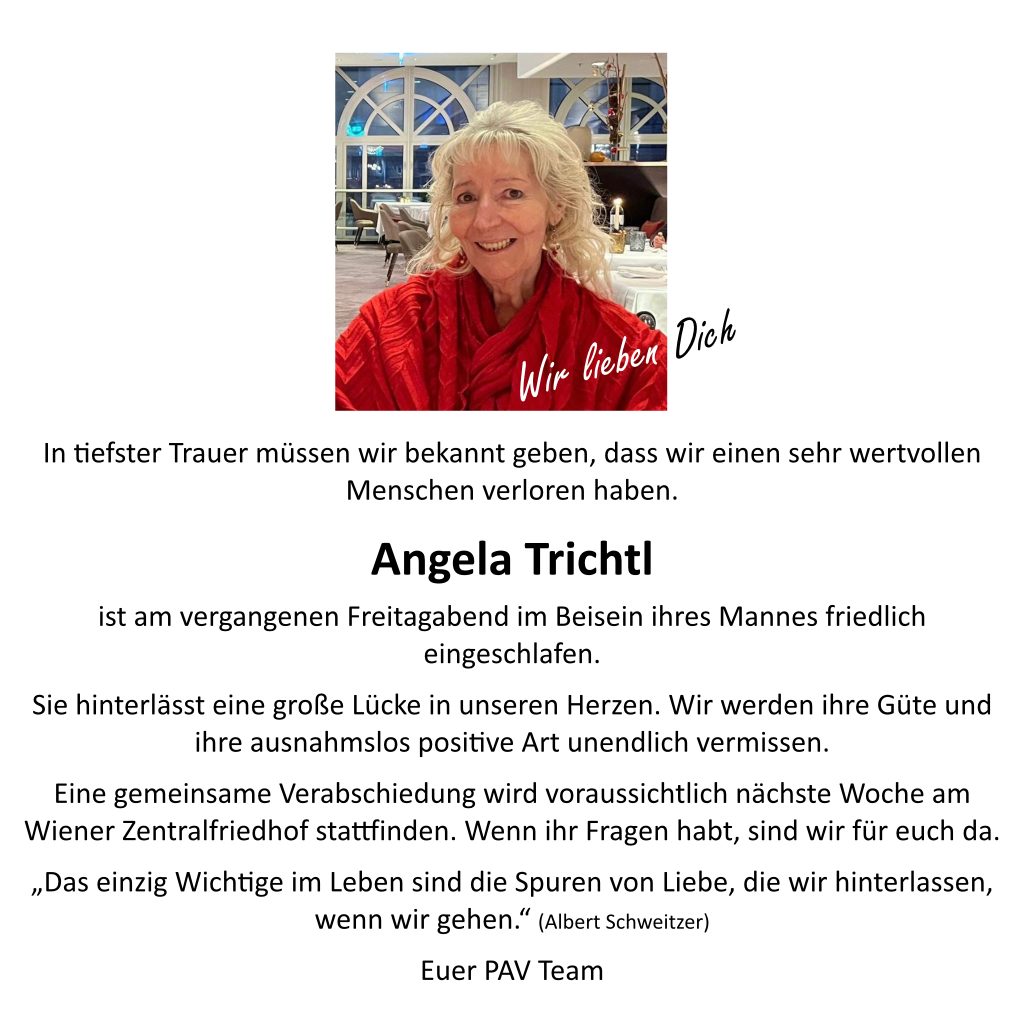 Angela war eine Frau voller Mut, Lebensfreude und Vertrauen. Sie besaß dieses seltene und kraftvolle Urvertrauen, dass die Dinge im Leben ihren Weg finden, so wie sie geschehen, so sollen sie sein. Diese Haltung hat uns alle tief berührt und gelehrt, auch in schwierigen Zeiten zuversichtlich zu bleiben.