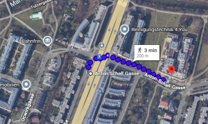 Sie können mit der Straßenbahn 30 oder 31 bis zur Anton-Schall-Gasse fahren. Dort ausgestiegen die Anton-Schall-Gasse (rechte Straßenseite) 200m entlang gehen. Das Gebäude befindet sich auf der linken Seite.